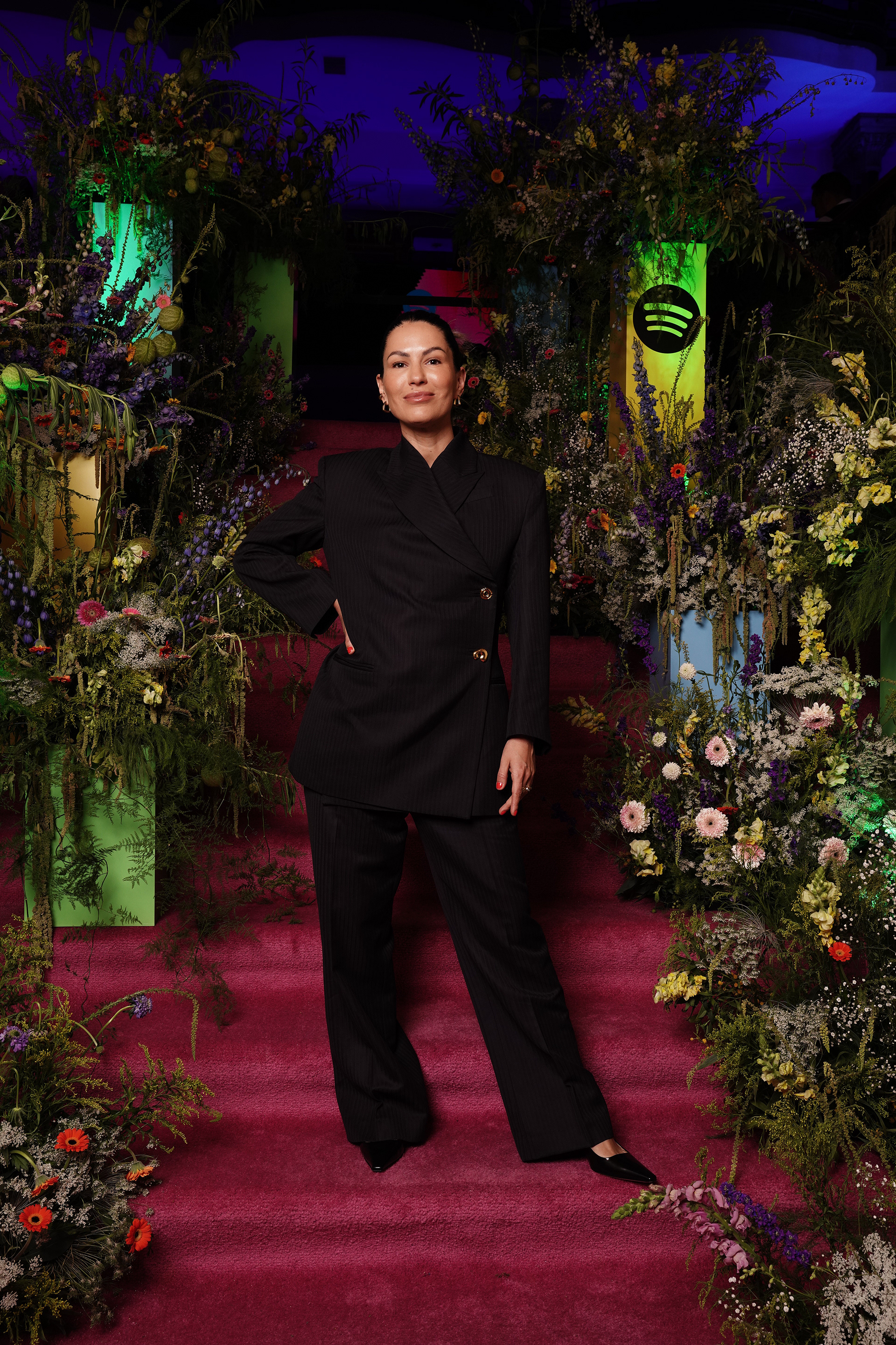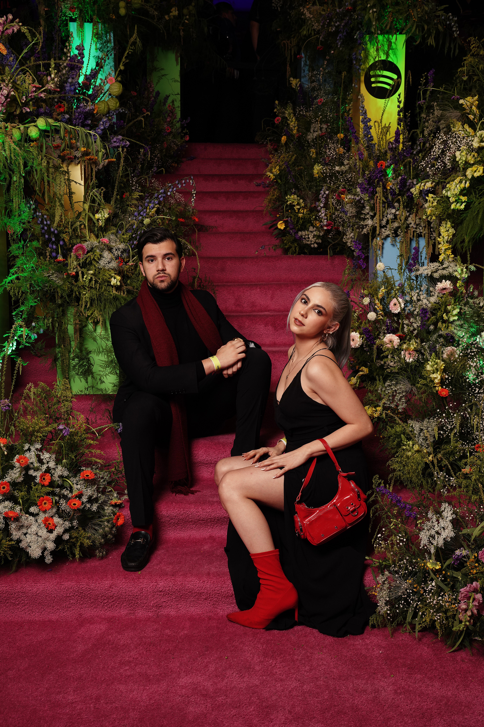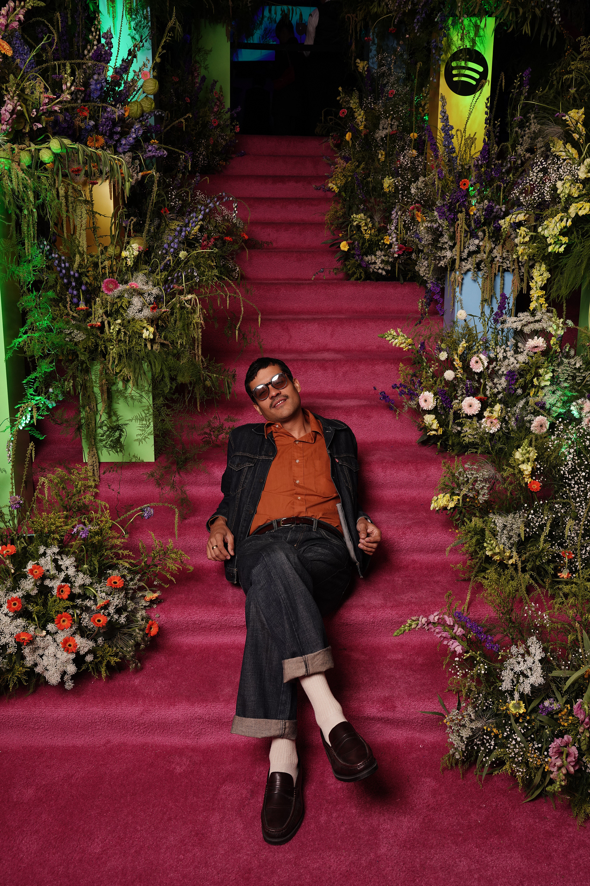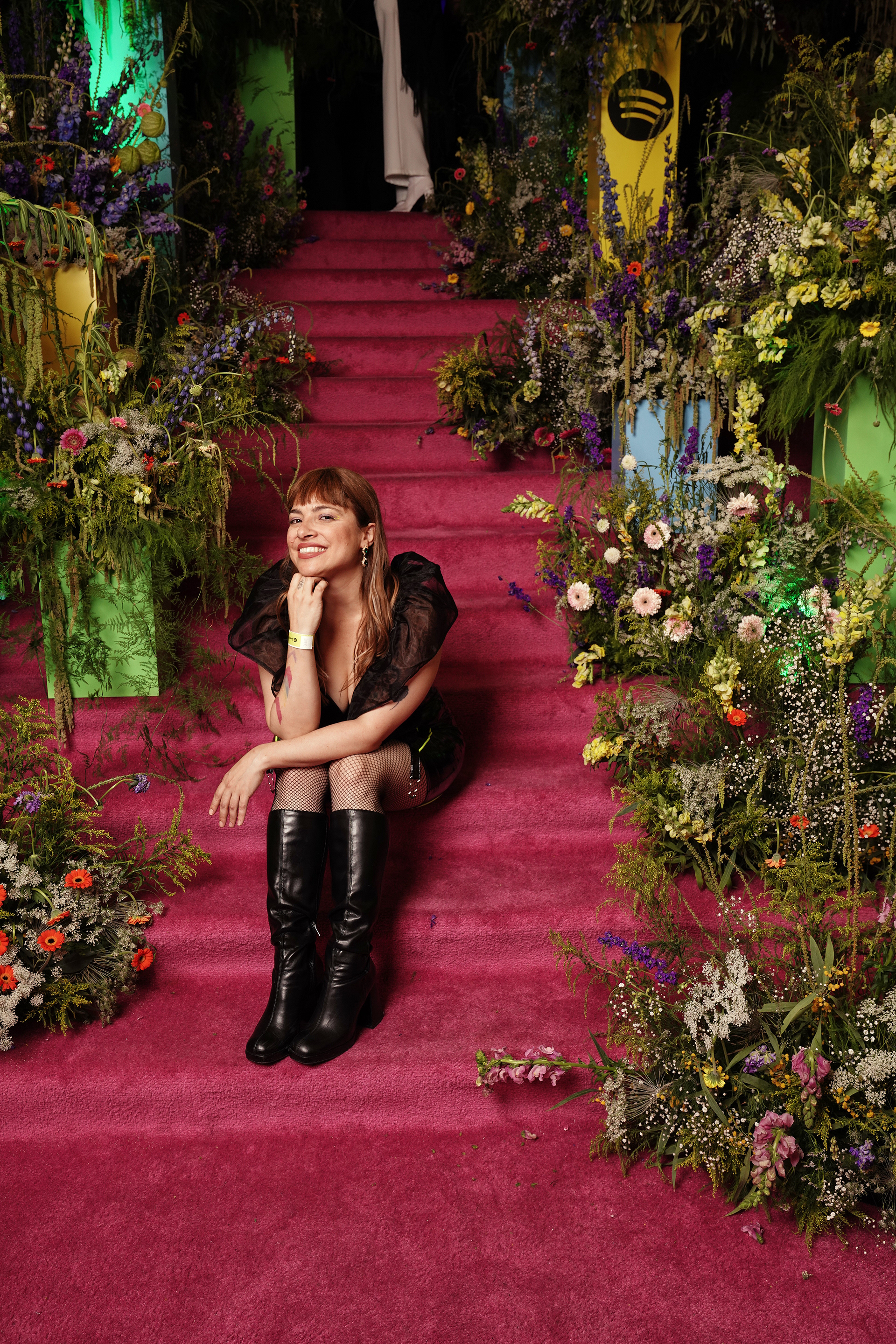 The experiential journey began with a stunning installation of light-bathed pillars creating a gradient effect, offering guests a dramatic transition as they entered the venue. Inside, a monumental stage constructed from dynamic cubes provided a contemporary backdrop for local DJ performances, while carefully curated floral installations paid tribute to Mexico's most influential music creators through artistic portraits.