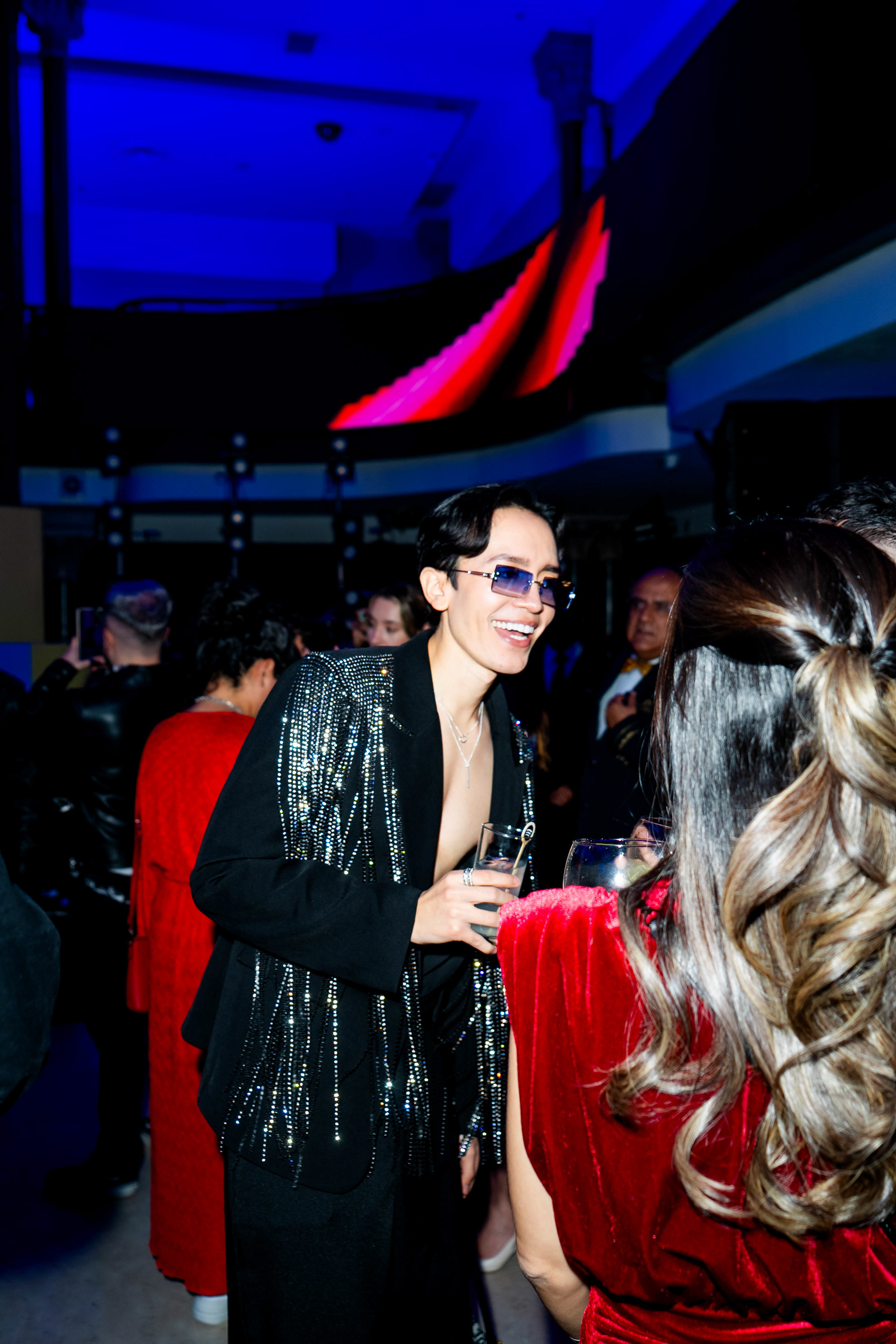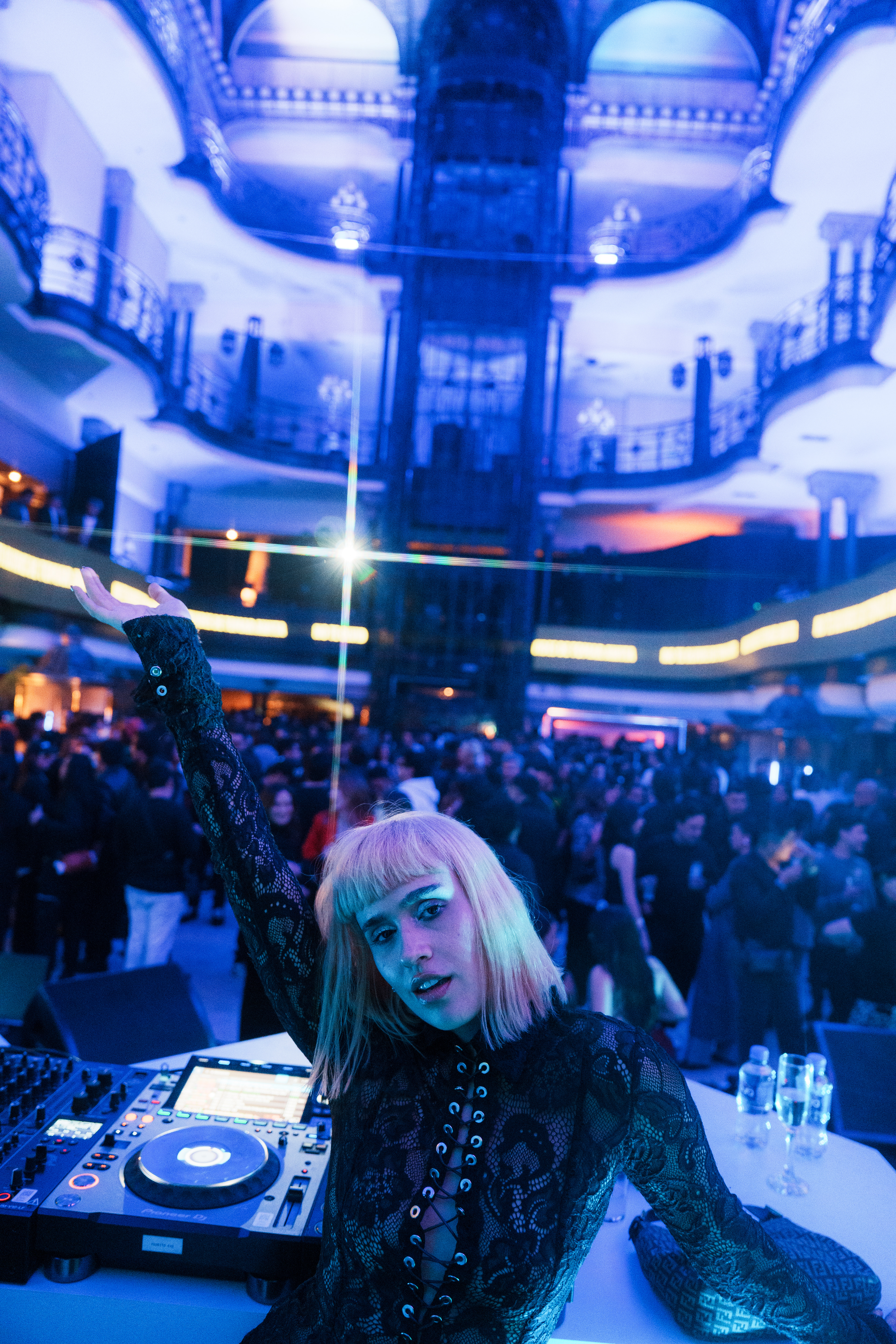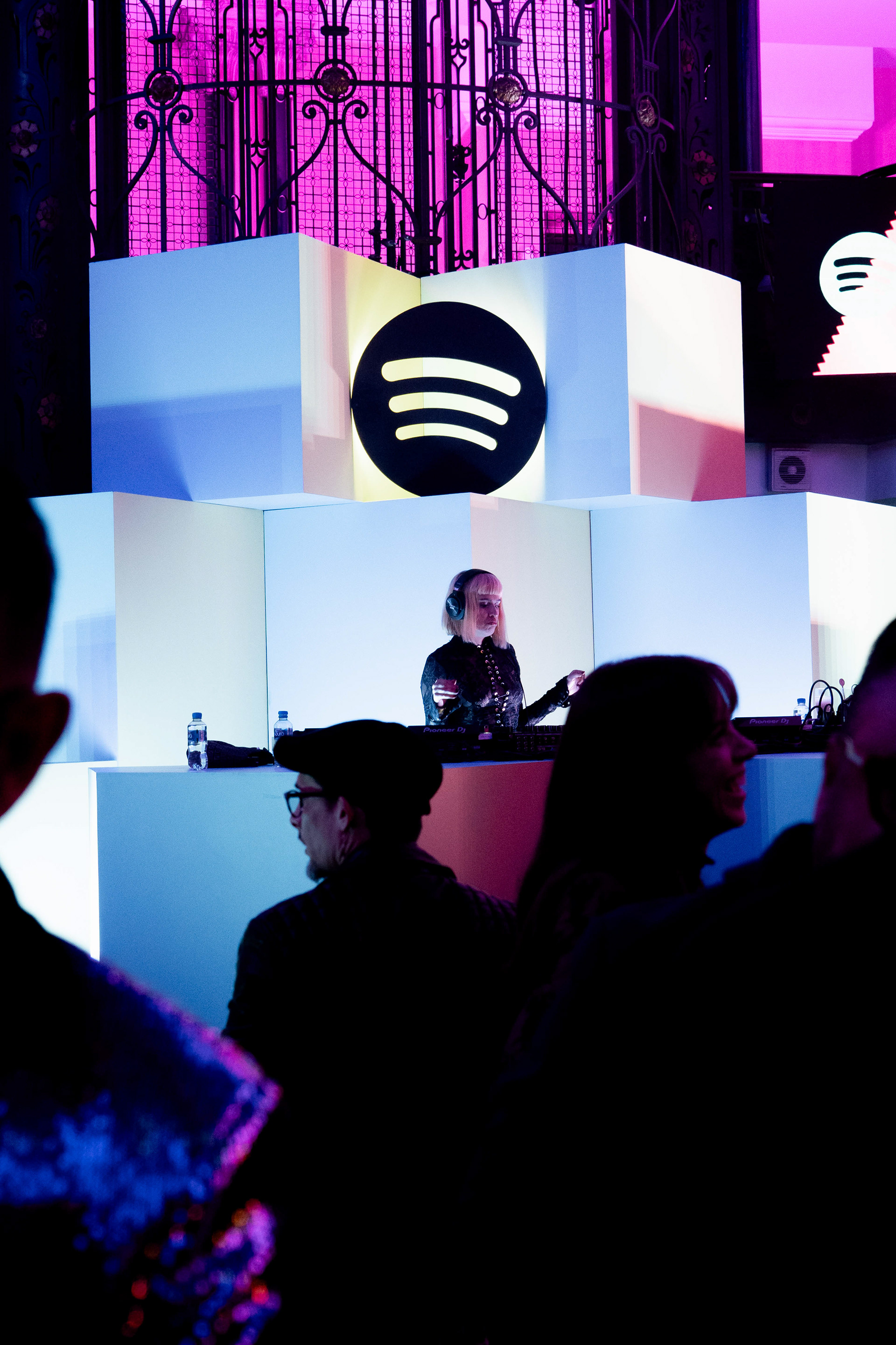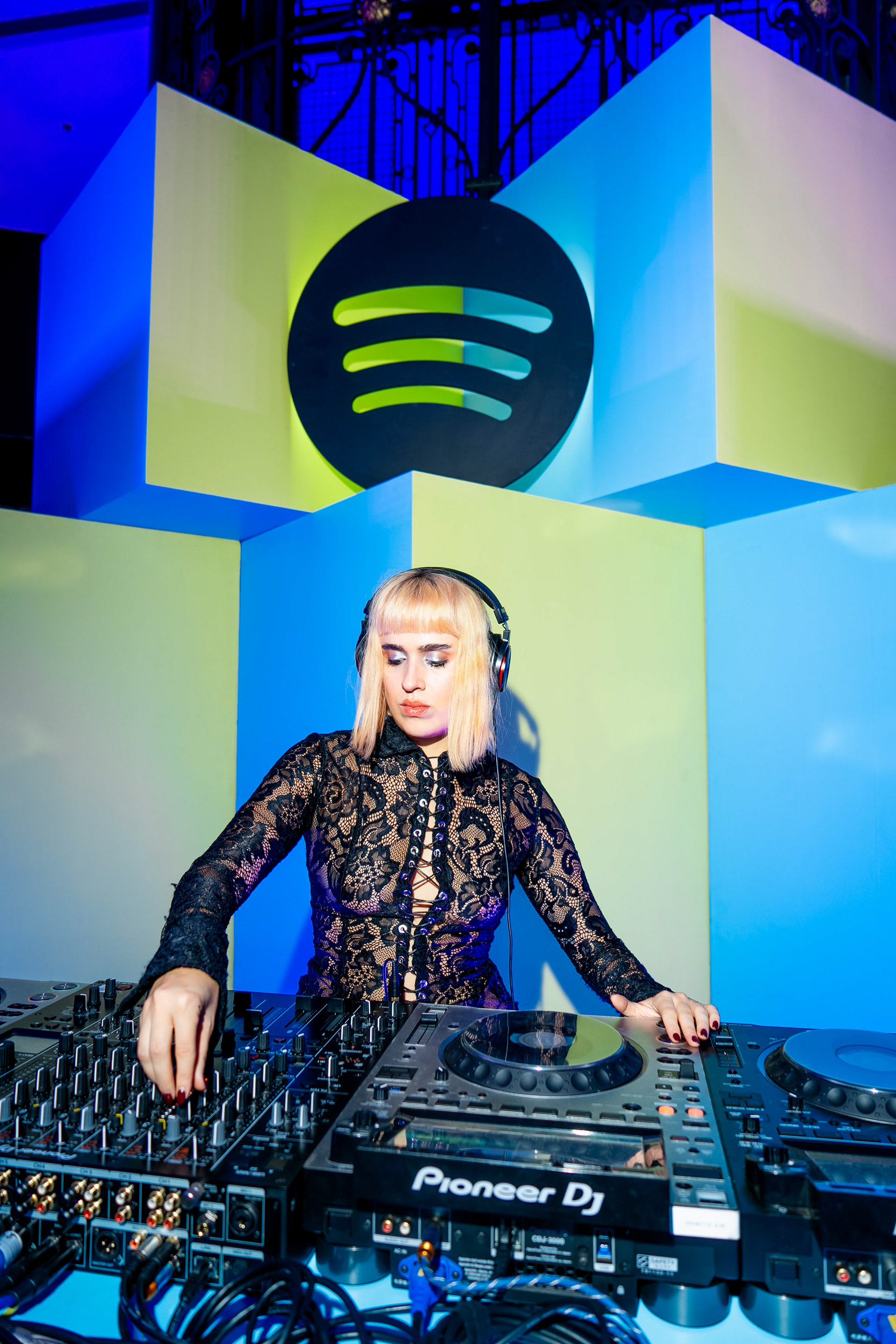The experiential journey began with a stunning installation of light-bathed pillars creating a gradient effect, offering guests a dramatic transition as they entered the venue. Inside, a monumental stage constructed from dynamic cubes provided a contemporary backdrop for local DJ performances, while carefully curated floral installations paid tribute to Mexico's most influential music creators through artistic portraits.