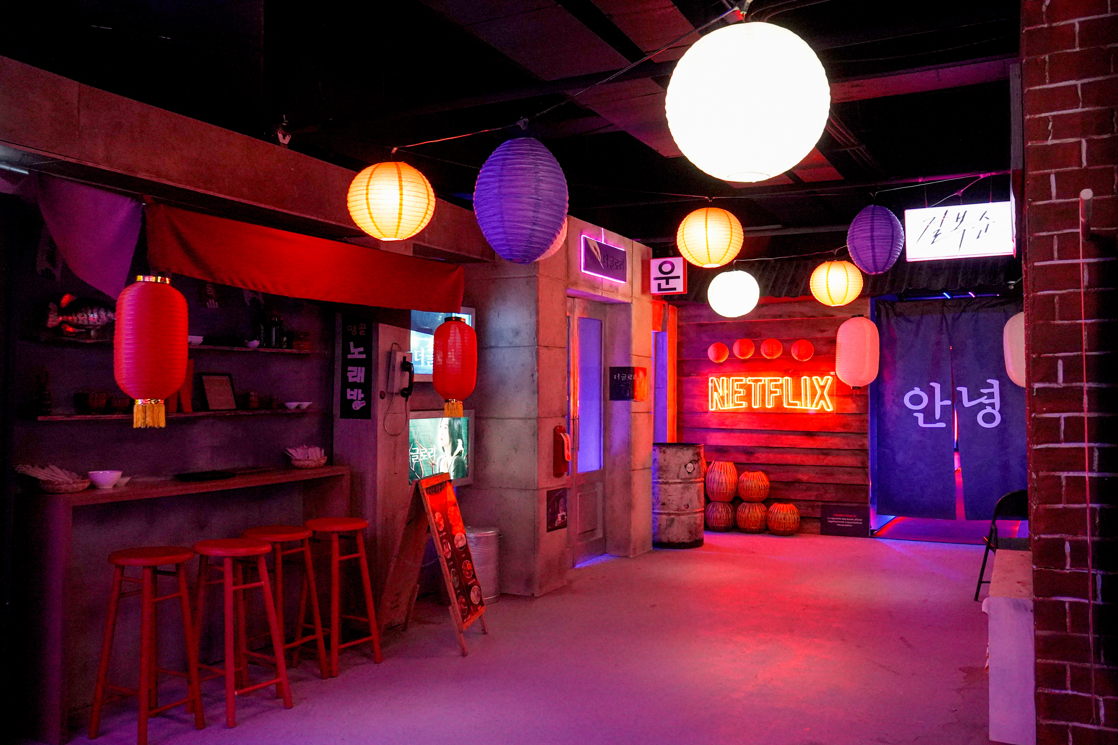 A Korean street corner revealed upcoming K-dramas. A corridor wallpapered with newspaper clippings housed true crime documentaries. A room filled with telephones connected visitors to pre-recorded messages from international talent across different cities. A sports bar celebrated football, Formula 1, and sports documentaries.
